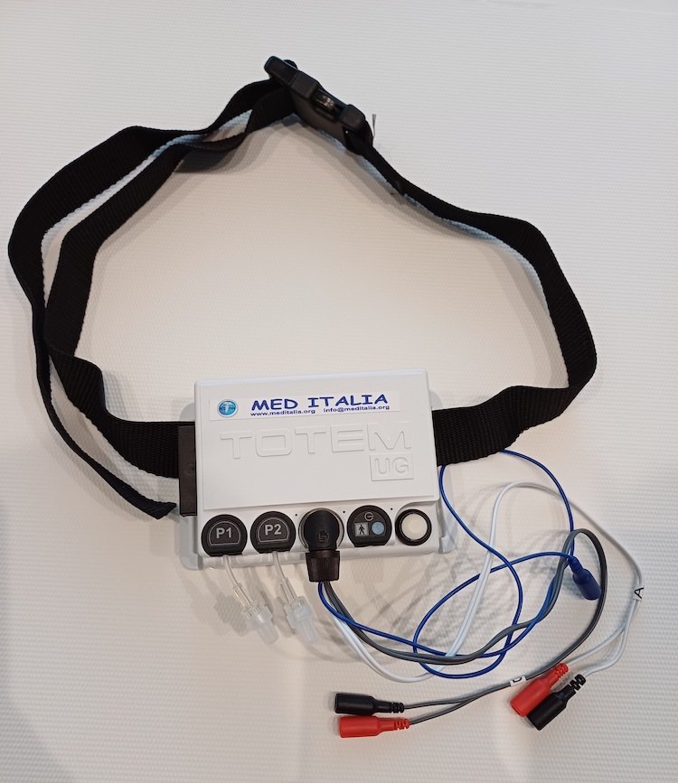 TOTEM-UG è un’unità professionale indossabile dal paziente per la rieducazione dell’incontinenza mediante elettrostimolazione e/o biofeedback perineali, attraverso collegamento senza fili (wireless) con un personal computer.