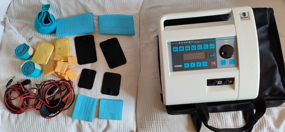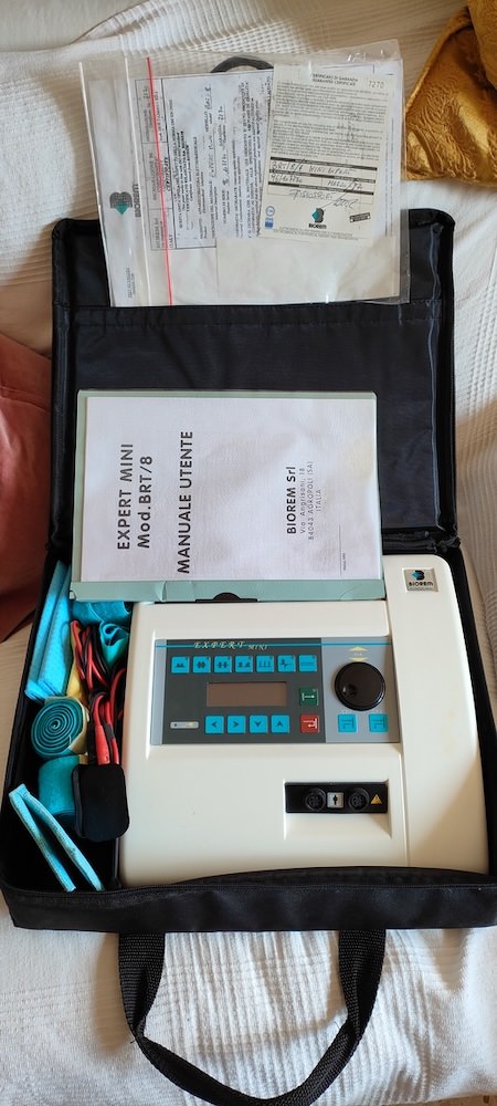 Apparecchio multifunzione per elettroterapia (ionoforesi, tens, diadinamiche…) indicato per terapia antalgica articolare muscolare, infiammazioni, tendiniti.